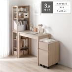 天然木 デスクシリーズ 3点セット デスク 80cm幅 + ラック + キャビネット ナチュラル デスクセット 引出し付き 業務用 まとめ買い 爆買