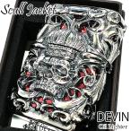 オイルライター スカルジャケット DEVIN 超重厚 シルバー&レッド オニキス フリント式 デヴィン 日本製 豪華 かっこいい
