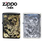 ジッポー 二面鳳凰 ライター ZIPPO 二面連続加工 和柄 黒金 銀イブシ ZIP-HOUOU