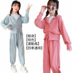 子供服 キッズ セットアップ 上下セット 女の子 春秋 長袖パーカー ジップアップ ワイドパンツ 2点セット ロングパンツ 子供 ジャージ スウェット