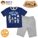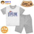 送料無料 男児 キッズ 綿混 半袖 パジャマ ロゴプリント ウエストゴム ポケット 上下組 子供服 男の子 my-0020a メール便対応