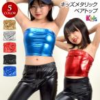 子供 メタリックトップス キッズ ステージ衣装 ダンストップス ブラトップ インナー 肩出し ストレッチ素材 ショート丈 無地 胸元ゴム T91205-kids [M便 1/2]