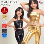 子供 メタリックトップス キッズ ステージ衣装 ダンストップス ブラトップ インナー 肩出し ストレッチ素材 ショート丈 無地 胸元ゴム T91205-kids [M便 1/2]