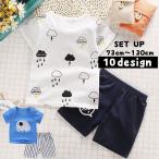 上下セット 半袖Tシャツ ハーフパンツ 部屋着 パジャマ ルームウエア 薄手 子供用 キッズ トップス ボトムス ラウンドネック カットソー プリント