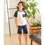 パジャマ 綿100%ラグラン配色半袖ルームウェア キッズ 子供 男の子 女の子
