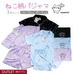 訳あり 半袖パジャマ 3点セット 上下 ポーチ付き ねこ柄 女の子 前開き 36509b nyanderful 少々難あり