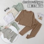 パジャマ ルームウェア インナー 上下 2点セット キッズ ベビー 子供 男の子 女の子 リブ 長袖 ロングTシャツ ロングパンツ ラウンドネック ウ