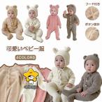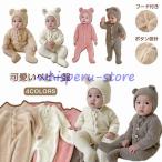 ベビー ロンパース 着ぐるみ フード付き ベビー服 動物 クマ 耳 フード付き くまさん 新生児服 あったか 可愛い カバーオール 男の子 女の子 寝袋 秋 冬
