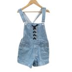 ラブトキシック Lovetoxic デニムサロペット オーバーオール L 160 水色 ショートパンツ レースアップ ロールアップ ■ECC001 キッズ