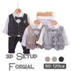 フォーマル 3点セット セットアップ ジレ 長袖シャツ パンツ 結婚式 パーティ ベスト 蝶ネクタイ 韓国子供服 キッズ服 ベビー服 男の子 80-120cm