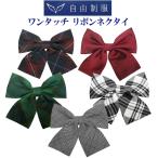 ワンタッチ リボンタイ 子供用 女の子 2508A リボンネクタイ アジャスター付き 無地 格子 グリーン エンジ グレンチェック