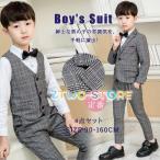 フォーマルスーツ 男の子 スーツ キッズ 子供 4点セット ベスト 上下セット セットアップ チェック柄 入学式 卒業式 七五三 結婚式 発表会 ギフト プレゼント