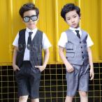 フォマール 男の子 スーツ ベスト 4点セット キッズ 子供タキシード 夏 半袖シャツ ハーフパンツ ネクタイ キッズ フォーマルスーツ 発表会 入学 紳士服 演出服