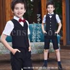 男の子 子供 キッズ 半袖 夏 フォーマルスーツ4点セット ベスト 子供スーツ ワイシャツ ハーフパンツ 蝶ネクタイ 子供服 ジュニア ピアノ発表会 イベント 七五三