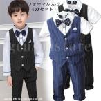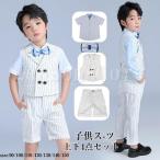 4点セット 子どもスーツ 男の子 スーツ キッズ フォーマル ストライプ柄 ベスト 夏 半袖 セットアップ 蝶ネクタイ結婚式 発表会 ピアノ演奏会 誕生日 入学式