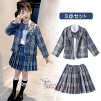 セットアップ 女の子 スーツ 3点セット チェック柄 入学式 フォーマルスーツ 制服 スクール 【シャツ+ジャケット_スカート】 フォーマル 学生服 子供服 スカ
