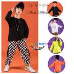 ダンス衣装女の子男の子長袖TシャツブラックホワイトグリーンオレンジダンスhiphopK-pop舞台団体服キッズ無地Tシャツ丸首トップスゆったり