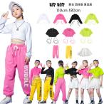 スウェットパンツストリートジャズダンスキッズダンスパンツ女の子へそ出しTシャツチアリーディングキッズダンス長袖Tシャツホワイトピンクグリー