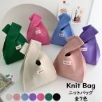 送料無料ニットバッグおしゃれ純色マルシェバッグニットトートバッグ縦型クロシェ編みハンドバッグマルシェ韓国雑貨レディースミニバッグ小さめ