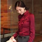 ブラウス シャツ ボウタイ 前開き 2色 長袖シャツ ビジネス OLオフィス フォーマル リクルート 就活 事務服 制服 きれいめ おしゃれ ホワイト 白 ワインレッド