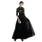 ロングドレス 立ち襟 チャイナ風 ピアノ発表会 ウエディングドレス 黒 パーティードレス お呼ばれ 結婚式 二次会 ロング丈ワンピース 袖付き フォーマル 成人式