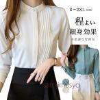 ブラウス 立ち襟 レディース フォーマル 長袖 シャツ スタンドカラー ノーアイロン スーツ インナー トップス プリーツ シフォン きれいめ オフィス 卒業式 入学