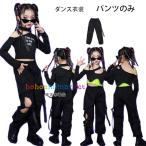 ダンス衣装女の子舞台団体服演出服キッズhiphopK-pop長袖Tシャツへそ出しトップス肩出しおしゃれ長ズボンダンスウェアヒップホップブラックパ