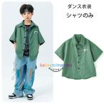 ダンス衣装女の子男の子半袖シャツ緑グリーンストライプ柄シャツhiphopK-pop舞台団体服演出服応援団キッズトップスカジュアルシャツ原宿系