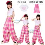 ダンス衣装女の子hiphopK-popステージ衣装jazz演出服原宿系舞台団体服キッズダンス半袖Tシャツへそ出しチアガールチアダンスチェック柄パンツ