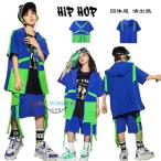 キッズダンス衣装hiphopK-popファッションアウターフード付き舞台団体服演出服男の子女の子半袖アウターキッズ韓国ブルートップス夏新品夏着