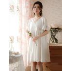 ネグリジェ 綿 姫系 かわいい ルームウェア ワンピース レディース 寝巻き ナイトウェア 部屋着 婦人服 きれいめ ランジェリー ネグリジェ 白 袖あり 半袖 Vネッ