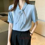 ボウタイ シャツ ブラウス シフォン 半袖 夏 レディース 事務服 半袖トップス 前開き 会社 仕事着 フォーマル クールビズ 通勤 OL オフィス ビジネス カジュアル