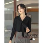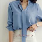 ボウタイ シャツ トップス シンプル ブラウス Vネック シフォン 白シャツ 黒シャツ 長袖シャツ 春秋 春夏 レディース 切り替え フォーマル 仕事着 通勤 OL オフ