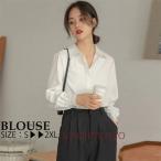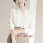 ブラウス シャツ Vネック 長袖 ビジネス OL オフィス フォーマル リクルート 就活 通勤 事務服 制服 きれいめ おしゃれ 無地 ホワイト 白 グレー 20代30代40代50