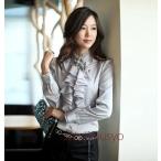 ブラウス シャツ フリル 前開き 4色 長袖シャツ レース ビジネス OLオフィス フォーマル リクルート 就活 事務服 制服 きれいめ おしゃれ グレー ピンク ホワイ