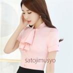 ボウタイ シャツ ブラウス シフォン 半袖 夏 レディース 事務服 レディース トップス 前開き 会社 仕事着 フォーマル クールビズ 通勤 OL オフィス ビジネス 体