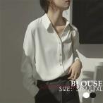 シンプル 定番 シャツ トップス Yシャツ ワイシャツ 開襟 シフォン 春夏 秋 レディース 事務服 ブラウス 長袖シャツ 就活 通勤 OL オフィス レギュラー 白シャツ