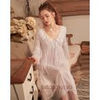 ネグリジェ ロング 可愛い 姫系 ルームウェア ワンピース 長袖 春秋 レディース 寝巻き ナイトウェア 部屋着 婦人服 きれいめ ランジェリー ネグリジェ 白 袖あ