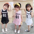 子供服 赤ちゃん キッズ 女の子 ノースリーブ 袖なし プリント 上下セット インナーパンツ付 パンツセットアップ トレーナー 韓国子供服 運動服 ゆったり 夏物