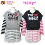 女児キッズ アンサンブル Lilty ラメロゴドルマンパーカー×ボーダー柄レース切替ワンピアンサンブル