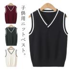 学生 子供服 通学 フォーマルベスト 子供服 秋 Vネック ニットベスト トップス キッズ ジュニア 発表会 男女兼用 制服 学園服 スクールベスト
