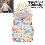 中綿入りベスト ダウン風ベスト アウター キッズ 子供 ジップアップ フード付き 上着 防寒 寒さ対策 プリント カジュアル おしゃれ かわいい お出