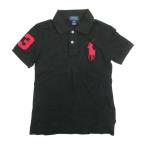 美品 POLO RALPH LAUREN ポロラルフローレン ビッグポニー 半袖 刺繍 鹿の子 ポロシャツ カットソー 130 黒 ブラック キッズ 古着 中古