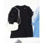 アプレ レ クール apres les cours 3柄刺繍チュールスリーブワンピース (ブラック)