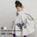 ロングワンピース チュニック フレアドレス キッズ 子供服 こども服 春 秋 パジャマ ナイトウエア お姫系ルームウエア 蝶プリント ゆったり 女の子