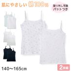 女児 パット付き キャミソール 2枚組 140cm〜165cm 子供 下着 女の子 パッド カップ付き インナー キッズ 肌着 シャツ コットン 女子 白 無地 セット