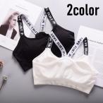 ジュニアブラ スポーツブラ 子供用 キッズ 下着 ブラジャー 無地 英字 ロゴ バッククロス シンプル かっこいい 小学生 中学生 ハーフトップ イン
