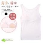 タンクトップ ブラトップ カップ付き ジュニア ガールズ インナー 吸湿発熱 150cm〜165cm 女の子 女児 下着 あったか 半袖 シンプル (在庫限り)