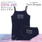 カップ付き 上下セット キャミソール ショーツ 女児 Tシャツ風ロゴ柄 ネイビー 140〜160(2518C/2519S)