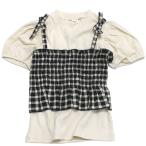 半袖Tシャツ "" 先染めチェックのシャーリングビスチェ&トップスセット ブラック(BK)